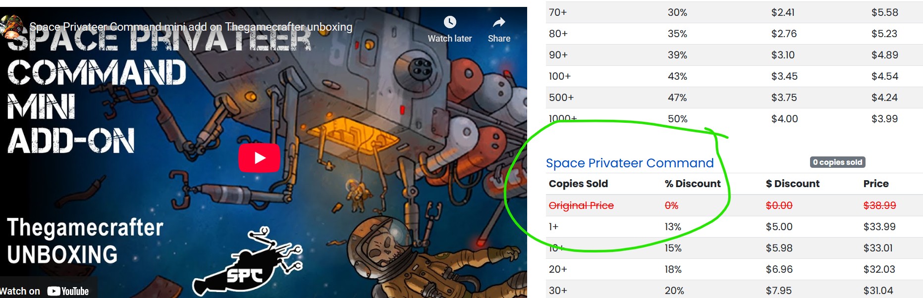 Hello fellow privateers, as i am doing a crowdsale for the SPC 10 card expansion pack, thegamecrafter allows me to combine a previous game for a crowdsale. So i am combining the main SPC game as a secondary crowdsale. If you scroll slightly below the sale you will come across the a second crowdsale for Space Privateer Command.